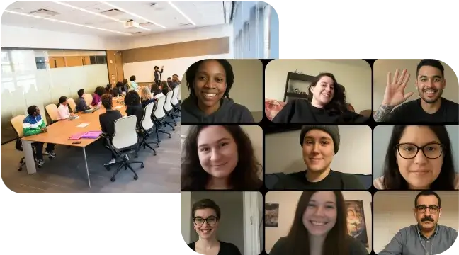 Lerne im direkten Austausch mit anderen. Das motiviert, schafft Verbindlichkeit und ermöglicht persönliches Feedback von erfahrenen Dozentinnen und Dozenten, egal ob vor Ort oder mit persönlicher Begleitung im virtuellen Klassenzimmer.